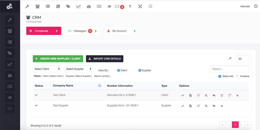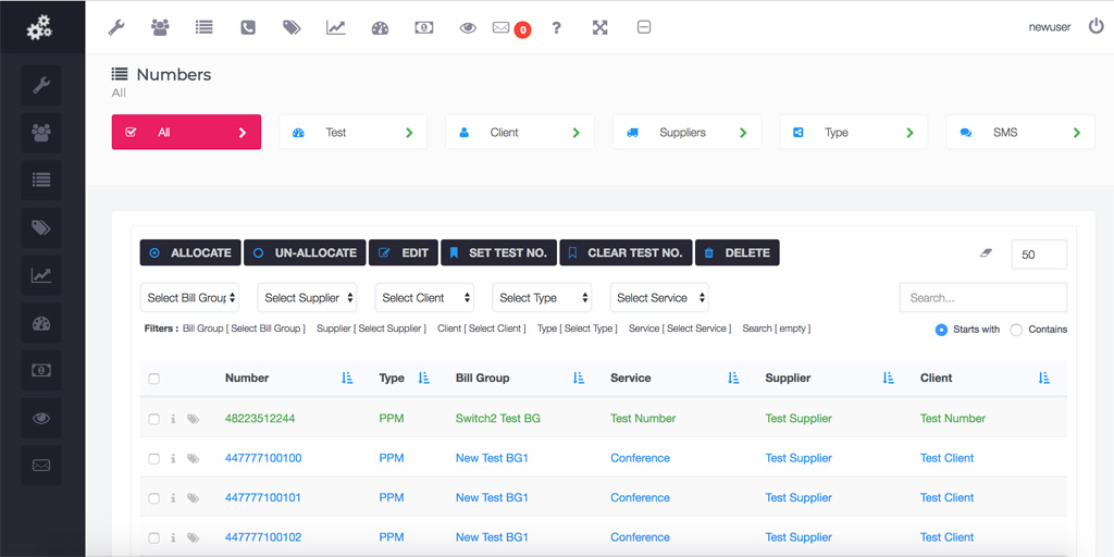 Test Numbers can be instantly set or cleared. These test numbers are then created automatically into ratecards for distribution. Test numbers are available to all reseller levels.