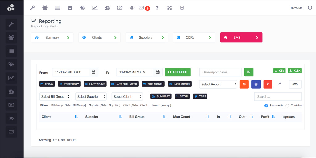 All our platforms work in similar principles. User rights control what users can see and what they are allowed to do. All settings and service configurations are based around the client / supplier and route. Statistics are comprehensive and can be expanded in view, right down to the actual message.